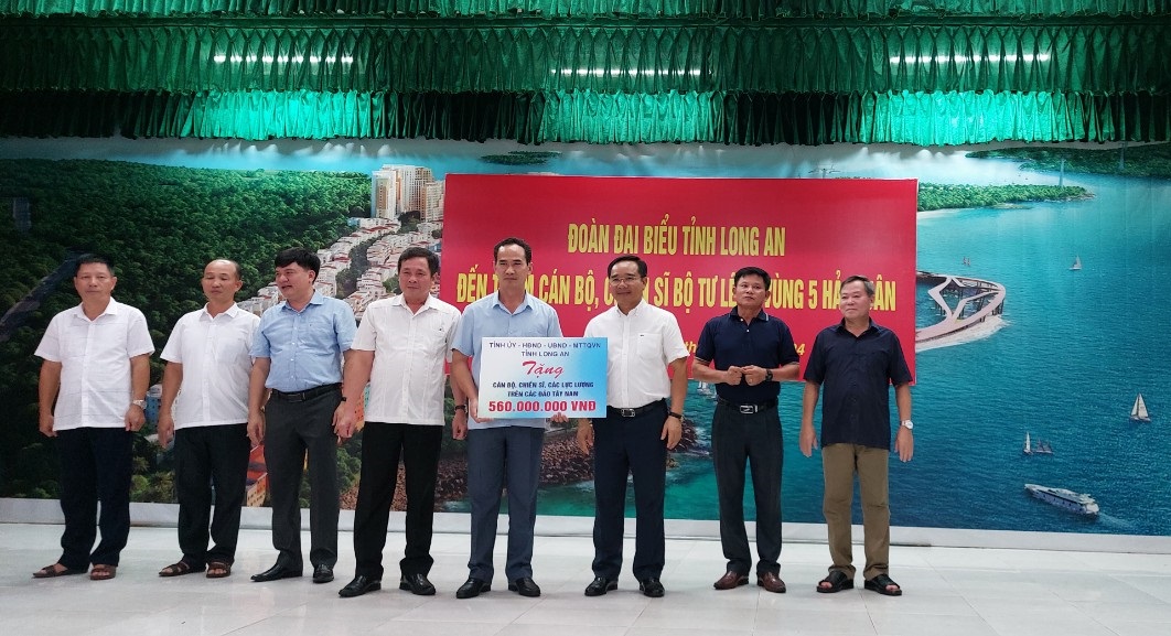 Nhân chuyến đi lần này, thay mặt Đảng bộ, chính quyền Nhân dân tỉnh Long An, đồng chí Nguyễn Văn Được và đồng chí Mai Văn Nhiều - Ủy viên Ban Thường vụ Tỉnh ủy, Phó Chủ tịch thường trực HĐND tỉnh đã trao tặng cán bộ, chiến sỹ, các lực lượng trên các đảo Tây Nam 560 triệu đồng và tặng Bộ tư lệnh Vùng 5 Hải quân 100 triệu đồng.
