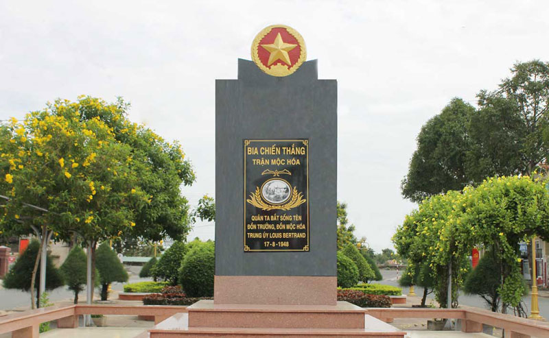 Bia chiến thắng trận Mộc Hóa đặt tại phường 1, thị xã Kiến Tường ngày nay