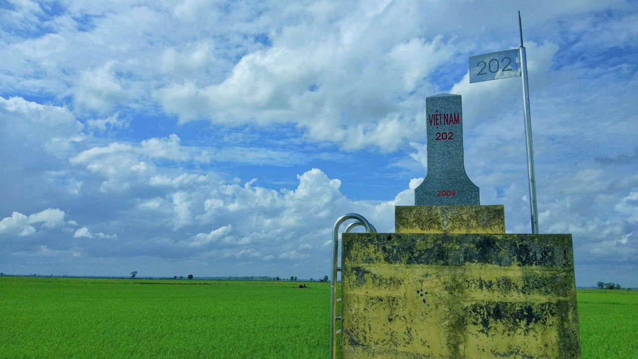 Cột mốc 202 nằm trên đường phân giới giữa huyện Mộc Hóa và huyện Kompong Ro - tỉnh Svay Rieng