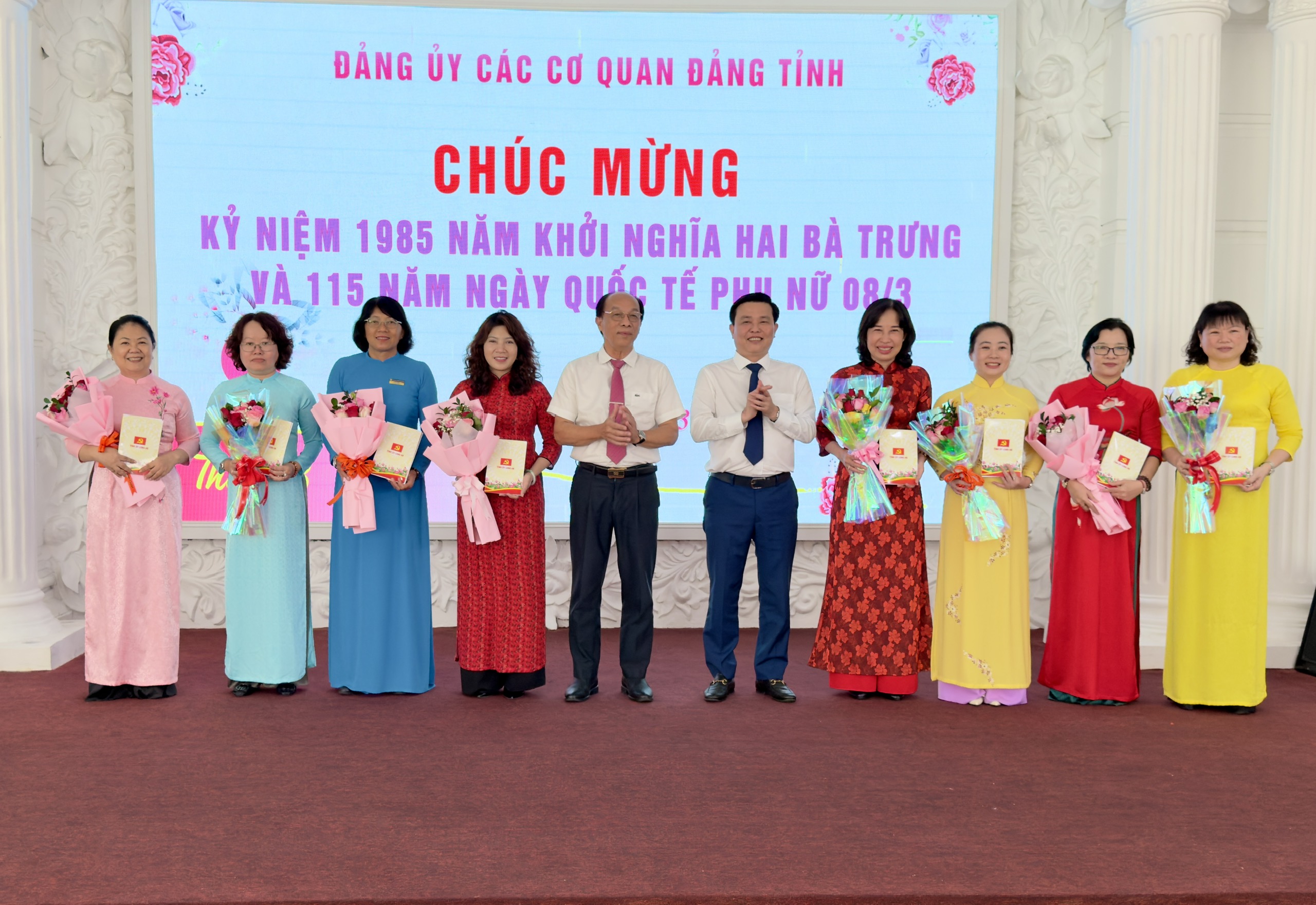 Phó Bí thư Thường trực Tỉnh ủy Nguyễn Thanh Hải chúc mừng cán bô, công chức nữ Đảng ủy các cơ quan Đảng tỉnh