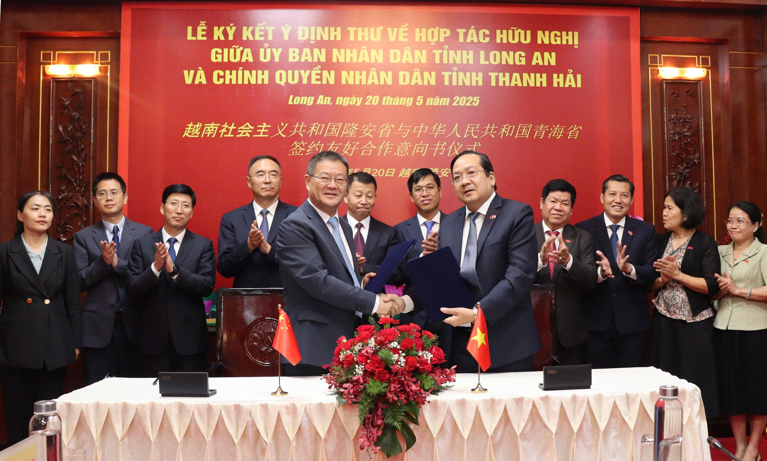 Dịp này, Ủy ban nhân dân tỉnh Long An và Chính quyền Nhân dân tỉnh Thanh Hải (Trung Quốc) đã ký kết ý định thư về hợp tác hữu nghị giữa hai bên nhằm mở ra cơ hội cũng như tiền đề để hai tỉnh cùng chia sẽ hợp tác cùng nhau hợp tác phát triển trên các lĩnh vực mà hai tỉnh quan tâm.