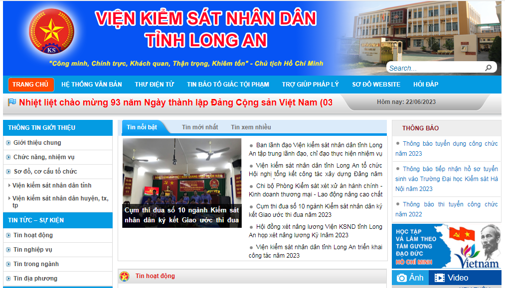 Trang thông tin điện tử của Viện kiểm sát nhân dân tỉnh Long An được đưa vào vận hành và đã thu hút được hàng triệu lượt truy cập