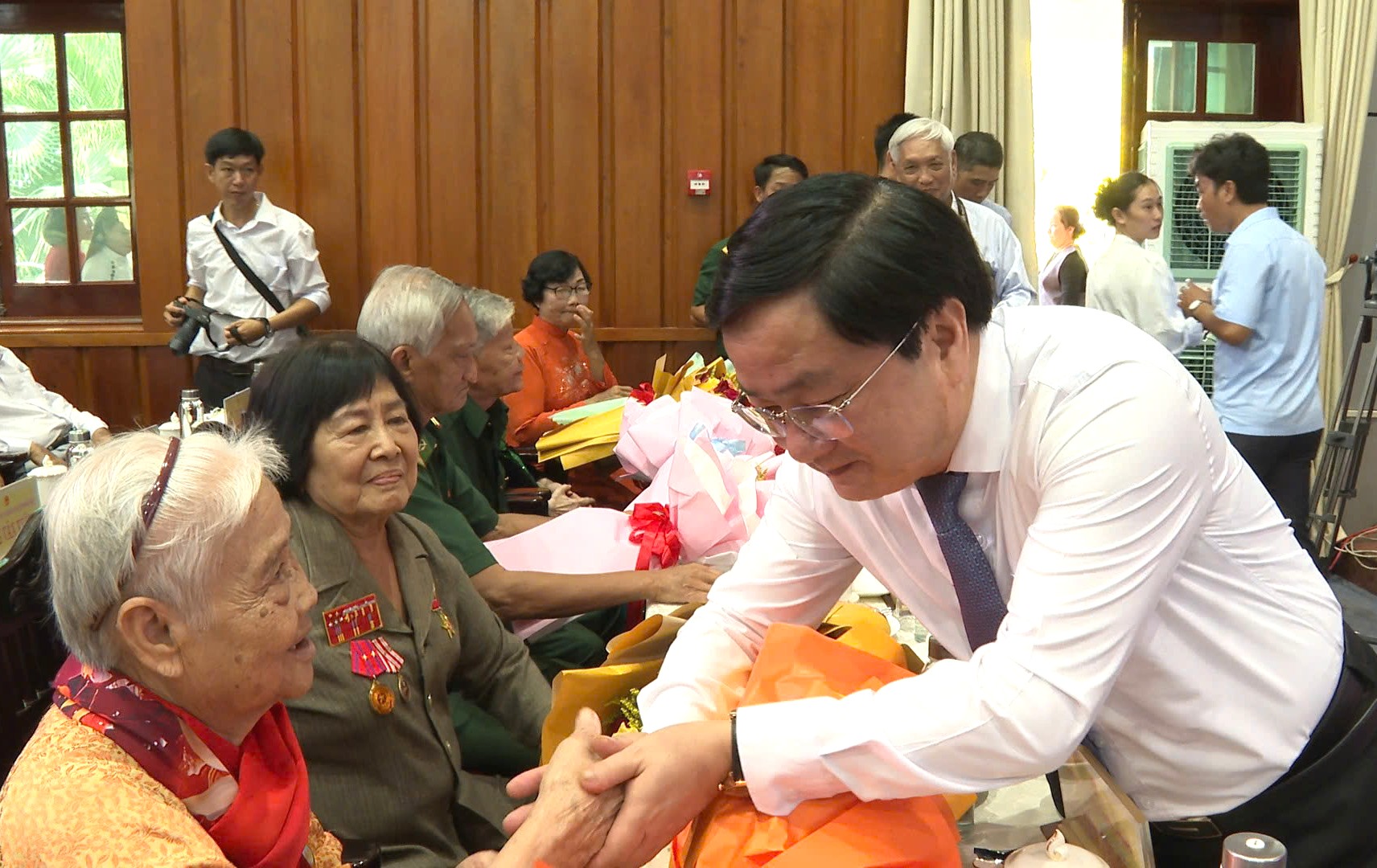 Bí thư Tỉnh ủy – Nguyễn Văn Quyết ân cần thăm hỏi và tặng hoa chúc mừng mẹ Việt Nam anh hùng, Anh hùng lực lượng vũ trang nhân dân, Anh hùng lao động thời kỳ đổi mới