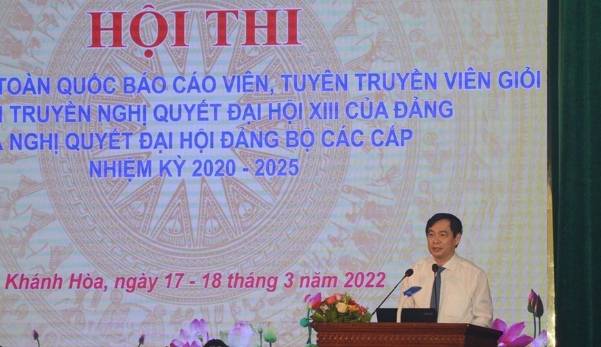 Phát biểu khai mạc hội thi, đồng chí Phan Xuân Thủy – Phó Trưởng Ban Tuyên giáo Trung ương, Trưởng Ban Tổ chức hội thi cho biết: Thời gian qua, đội ngũ báo cáo viên, tuyên truyền viên luôn nêu cao tinh thần, ý thức trách nhiệm, tự học tập, tự nghiên cứu để nâng cao trình độ, thực hiện tốt vai trò là cầu nối đưa chủ trương, nghị quyết của Đảng, chính sách, pháp luật của Nhà nước đến cán bộ, đảng viên và nhân dân.