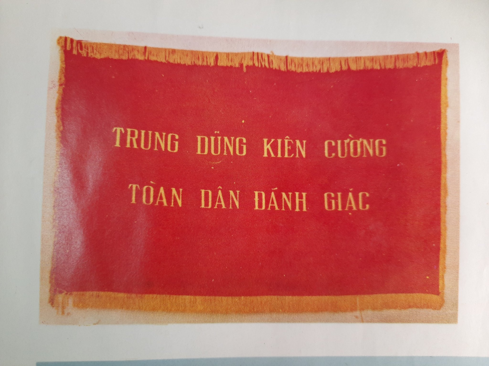 Lá cờ ghi tám chữ vàng: “Trung dũng, kiên cường, toàn dân đánh giặc”
