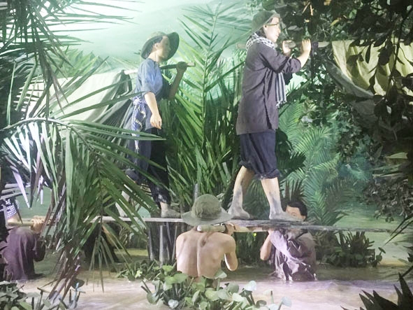 Hình ảnh “cây cầu người” được tái hiện tại Công viên tượng đài Long An “Trung dũng, kiên cường, toàn dân đánh giặc”