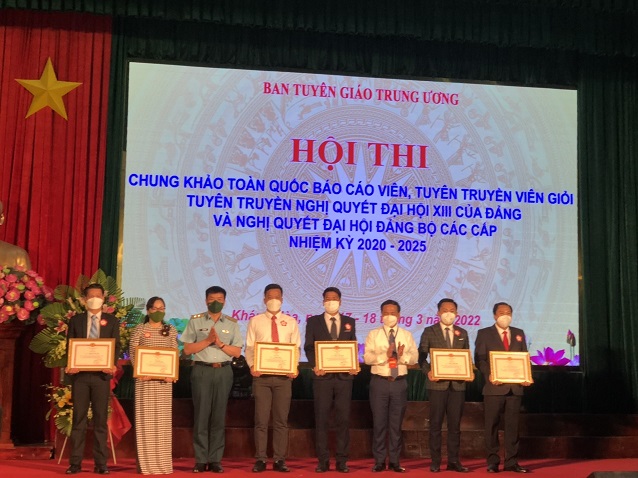 Sau 2 ngày làm việc tích cực, khẩn trương, chiều nay 18/3/2022, tại Khánh Hòa, Hội thi Chung khảo toàn quốc báo cáo viên, tuyên truyền viên giỏi tuyên truyền Nghị quyết Đại hội XIII của Đảng và nghị quyết đại hội Đảng bộ các cấp nhiệm kỳ 2020 - 2025 đã bế mạc. Đồng chí Nguyễn Trọng Nghĩa - Bí thư Trung ương Đảng, Trưởng Ban Tuyên giáo Trung ương đến dự và trao giải hội thi.