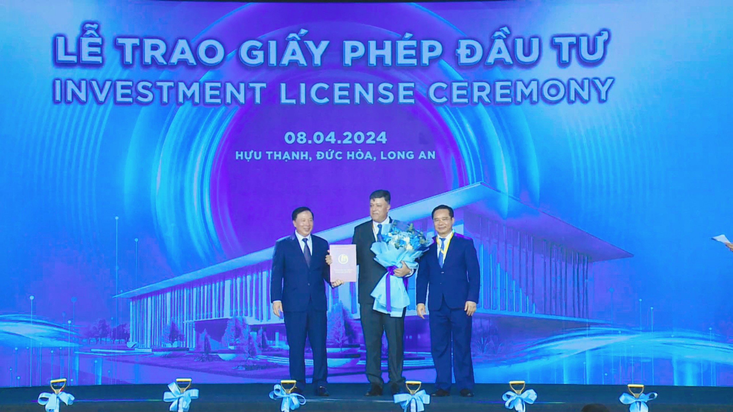 Bí thư Tỉnh ủy - Nguyễn Văn Được và Chủ tịch Ủy ban nhân dân tỉnh - Nguyễn Văn Út trao Giấy chứng nhận cho nhà đầu tư